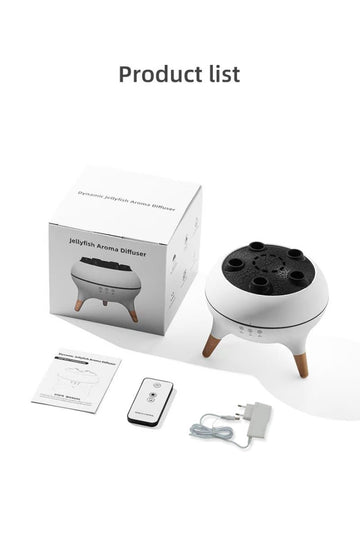 The diffuser uses ultrasonic technology to create a jellyfish-shaped mist that rises gently, mimicking the motion of a floating jellyfish